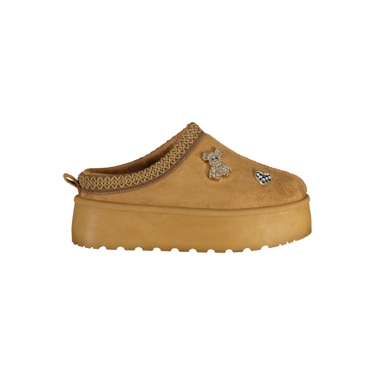 SABOT CON PELO, RICAMO, APPLICAZIONI CON STRASS, ZEPPA 4 CM, LOGO