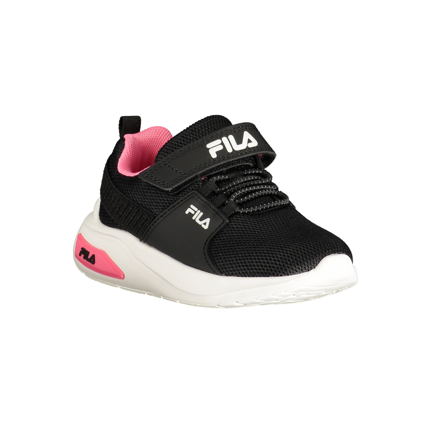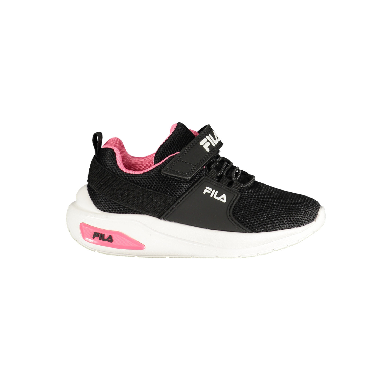 CALZATURA SPORTIVA CON STRAPP ED ELASTICI, DETTAGLI A CONTRASTO IN FUCSIA, PLANTARE REMOVIBILE, STAMPA, LOGO